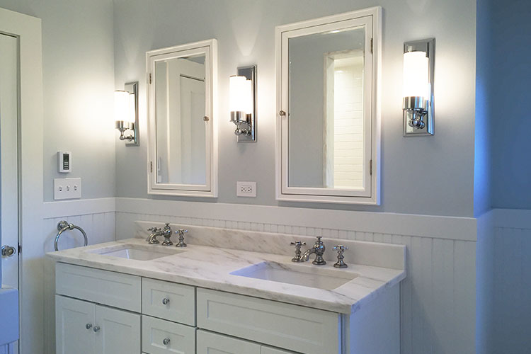 Renovation of a lake house in Litchfield County, Connecticut involving the refinishing of all aspects of the existing residence. Living spaces, bathrooms, and outdoor areas were reconfigured, and interior paneling added. New exterior entry porticos were added, and a new bluestone patio and granite steps were incorporated into the landscaping.