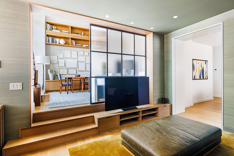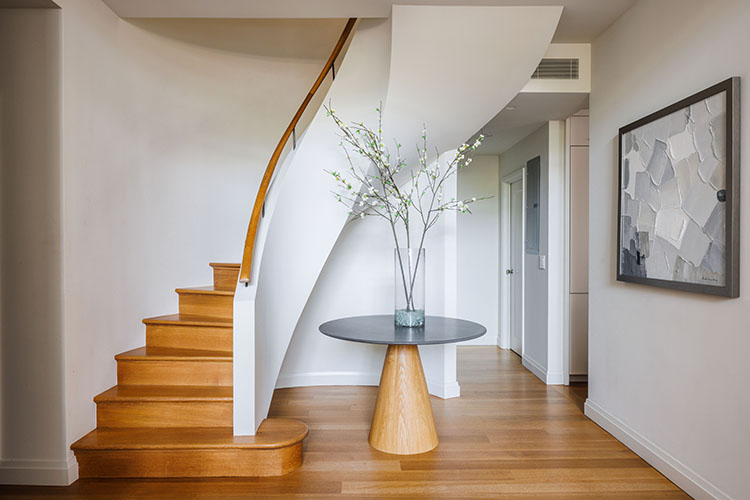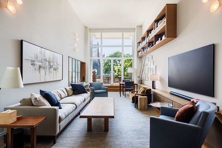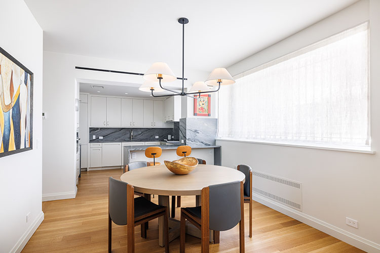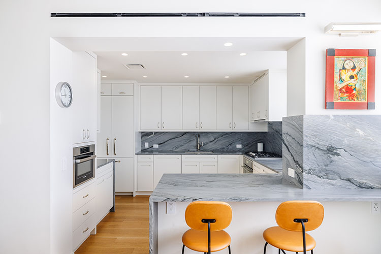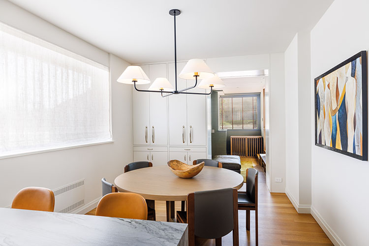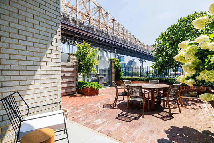 Renovation of a Sutton Place duplex apartment with the installation of a two-story window with doors to the exterior patio. The renovation also included the installation of central air conditioning, a reconfigured kitchen opened to dining room, and all new finishes, plumbing and lighting fixtures, doors, hardware and trim throughout.